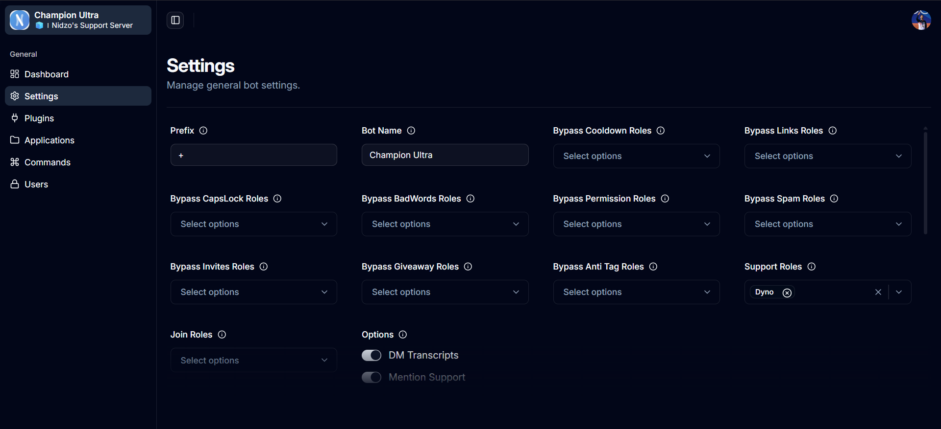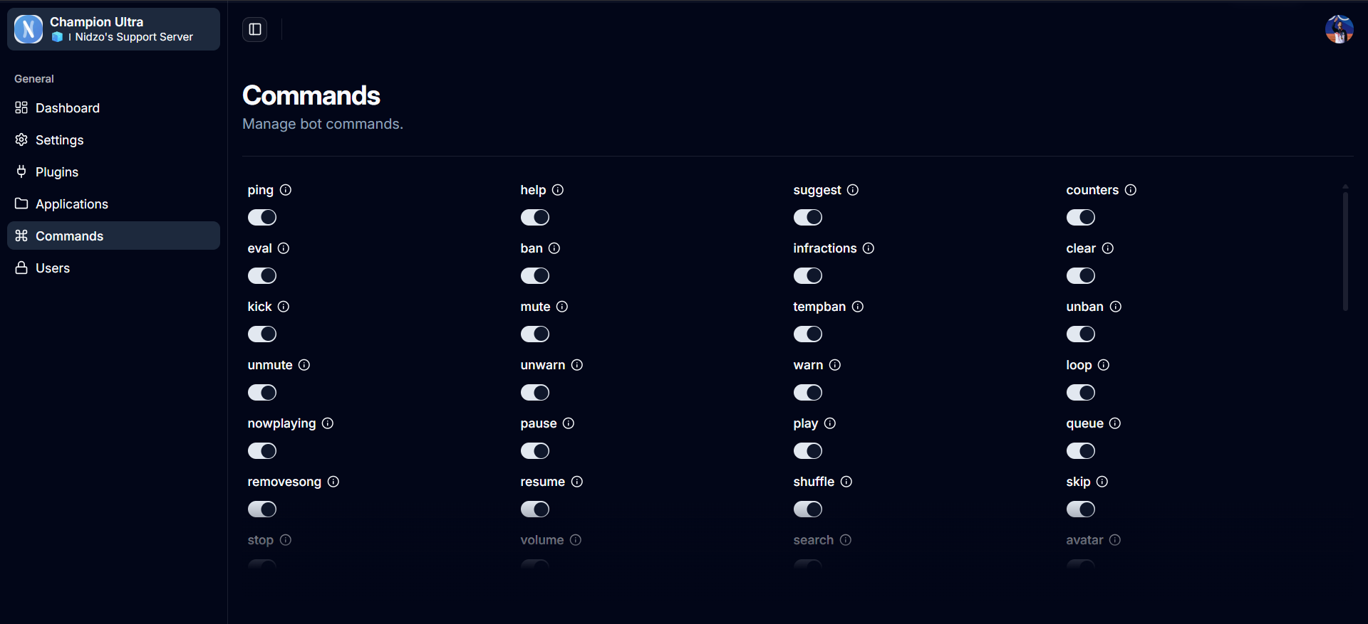 Images of (most) Features that Champion Ultra Discord Bot has.